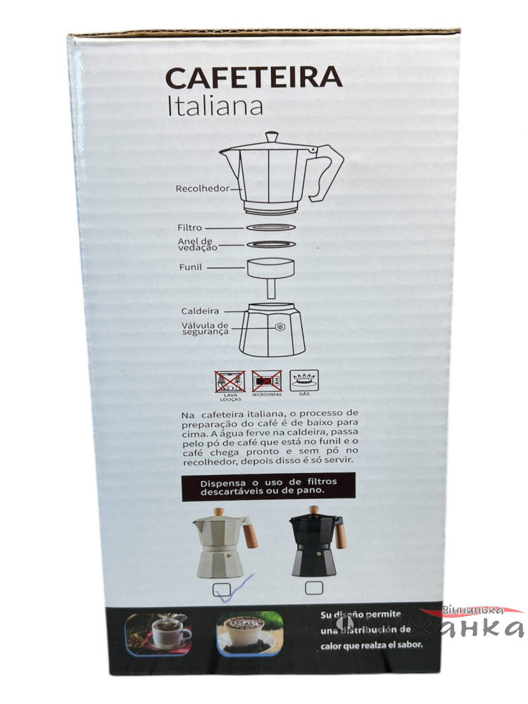 Характеристики Гейзерная кофеварка Бергамо белая 300 мл 6 чашек (60982)