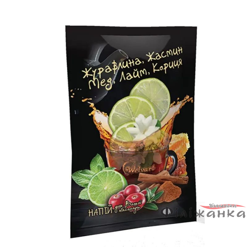 Welvart “Клюква, жасмин, мед, лайм и корица” - это концентрированный чай украинского производства. Благодаря использованию натуральных ингредиентов и особой рецептуре удалось получить невероятно яркий, вкусный и сочный напиток. К тому же, готовить его проще простого! Достаточно всего лишь залить пакетик водой любой температуры и хорошо размешать. Ну а если захочется чего-нибудь более экзотичного, Welvart предлагает использовать концентрат для создания различных коктейлей, лимонадов и даже смузи.