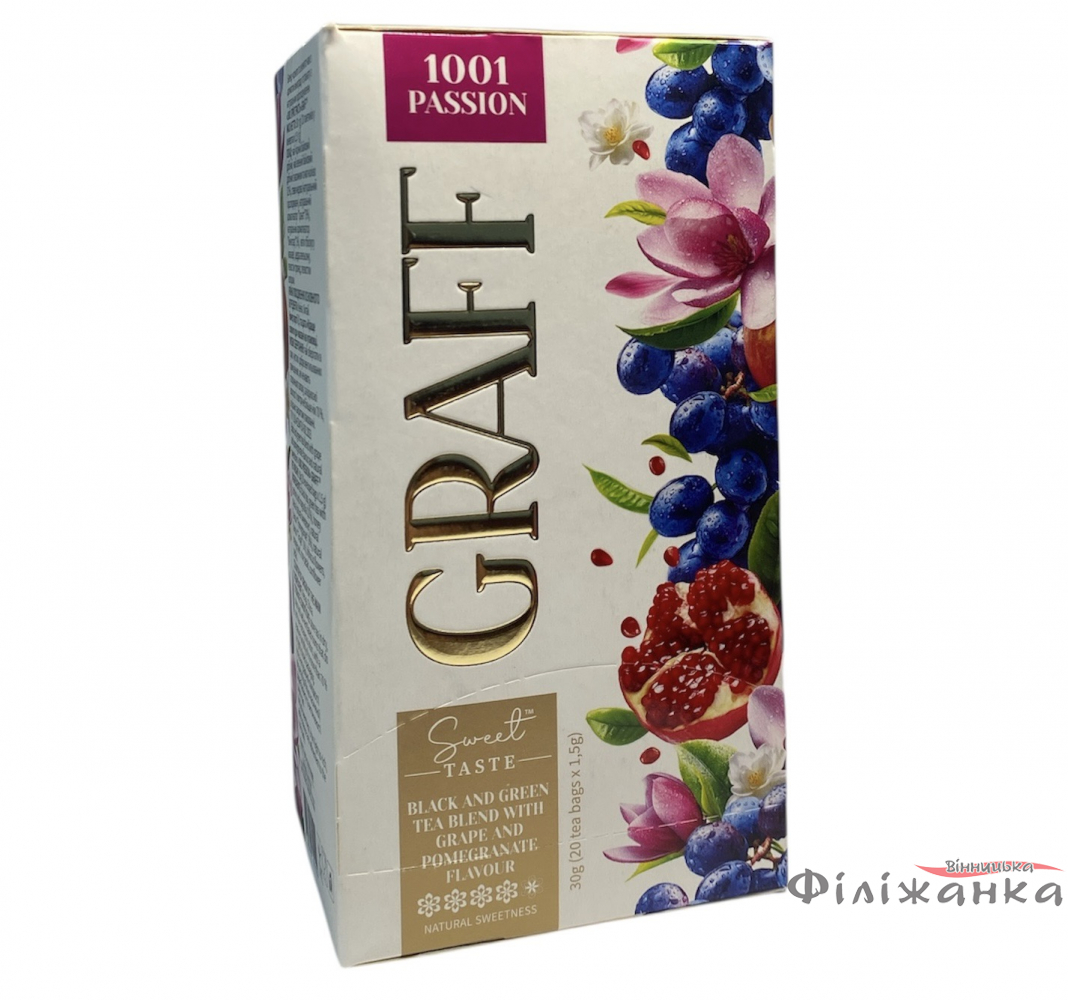 Чай Graff черный и зеленый 1001 Страсть с ароматом винограда и граната 20 пакетиков по 1,5 г (60728)