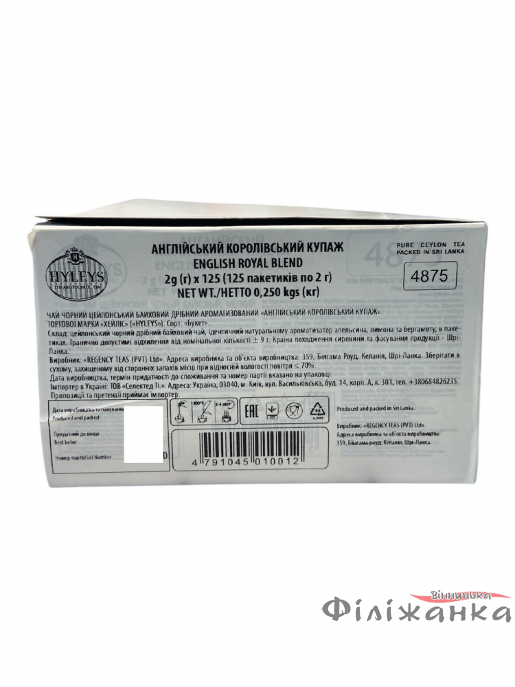 Чай Hyleys Королевский Купаж — это результат многовековых традиций и инновационных методов производства, которые делают этот напиток уникальным и поистине королевским. Чай представлен в удобной упаковке, содержащей 125 пакетиков, что делает его идеальным выбором для семейного чаепития или офисного использования.