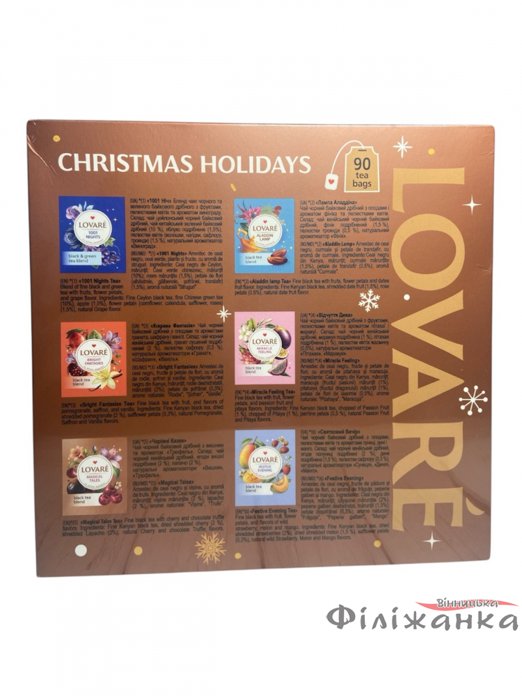 Характеристики Чай Lovare Коллекция чая Christmas Holidays 6 вкусов по 15 пакетиков (60902)