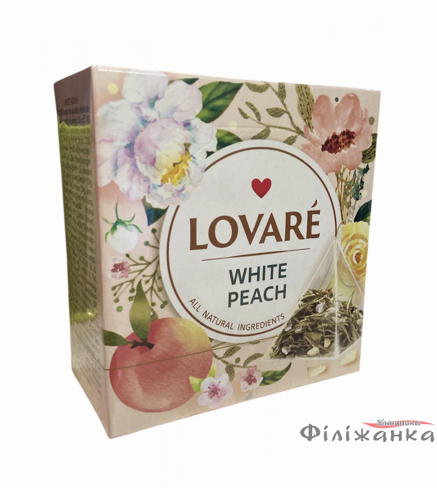 Чай Lovare White peach белый с ароматом персика 15 штук по 2 г в пирамидках (60426)