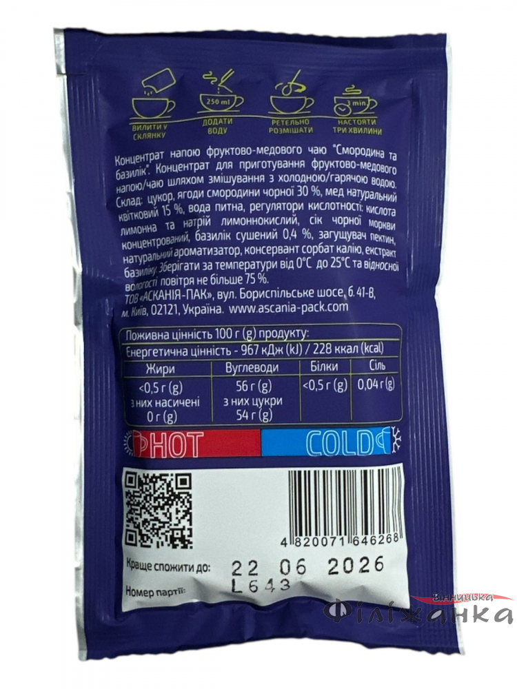 Производитель Ascania гарантирует высокое качество каждого пакетика чая. С заботой о вашем здоровье и вкусе, сырье для этого напитка бережно выращивается в Украине, а сам продукт упаковывается в стране происхождения, что подтверждает его свежесть и подлинность.