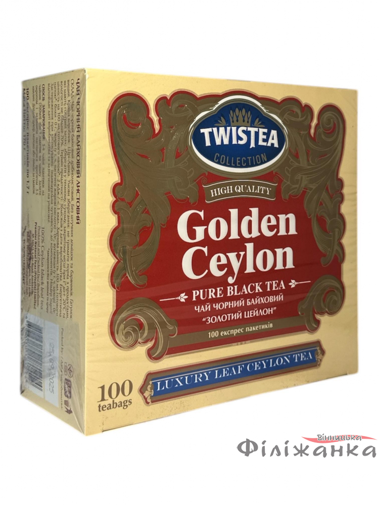 Товар имеет 100 пакетиков, что обеспечивает продолжительное удовольствие от чая. Чай Twistea Golden Ceylon черный обладает насыщенным и гармоничным вкусом с легкими фруктовыми нотками и нежной сладостью. Этот сорт черного чая обычно считается отличным выбором для тех, кто предпочитает более крепкие и насыщенные чаи.