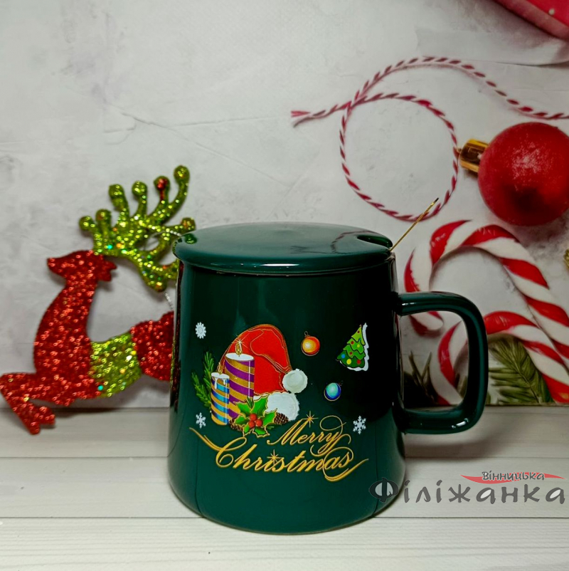 Чашка с крышкой и ложкой "Рождественская" 400 мл — идеальный подарок для праздников
