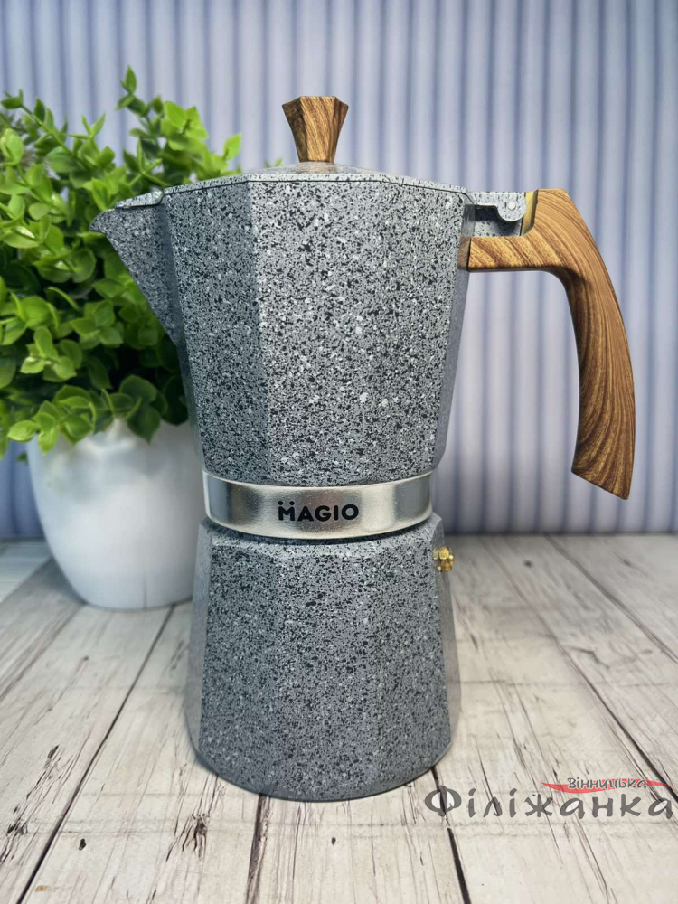 Гейзерная кофеварка Magio алюминиевая 450 мл на 9 чашек – это превосходный выбор для всех любителей кофе. Она сочетает в себе стильный дизайн, высокое качество и удобство в использовании, что делает каждое утро особенным. Попробуйте и убедитесь сами!