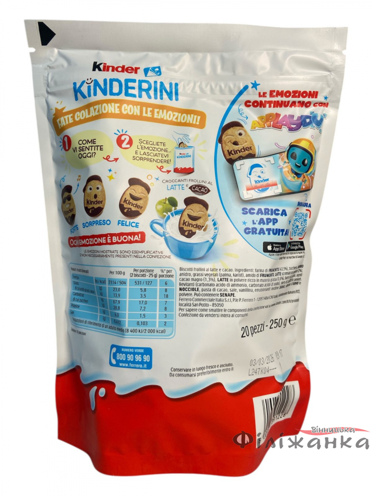 Печенье с какао Kinder Kinderini 20 шт в упаковке 250 гр (60933)