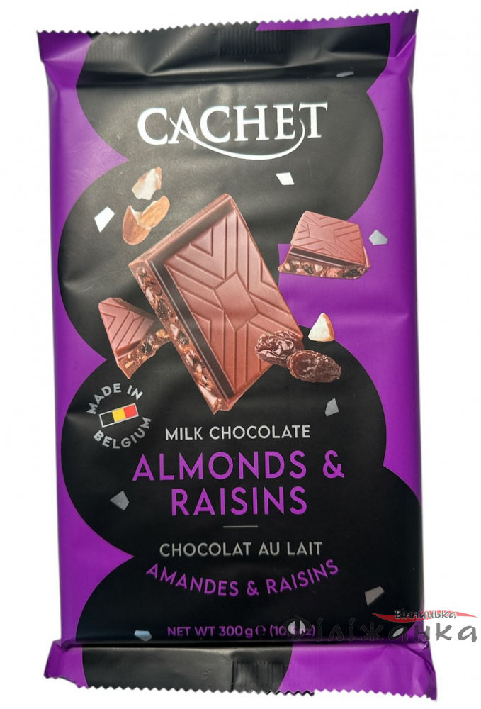 Шоколад Cachet Almonds & Raisins Молочный с миндалем и изюмом — не просто шоколад, а настоящее произведение искусства! Каждый его кусочек нежно тает во рту, раскрывая свою благородную терпкость, а все пространство вокруг наполняется ярким ароматом какао.