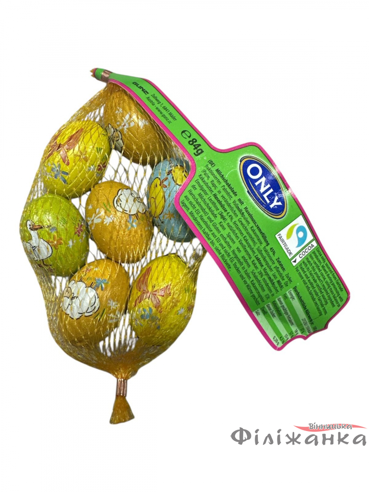 Шоколадные конфеты Only пасхальные яйца в сетке с орехово-кремовой начинкой 84г (61080)
