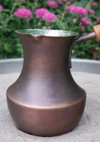 Турка выполнена из высококачественной патинированной меди, что придает ей элегантный винтажный вид. Объем турки составляет 500 мл, что позволяет приготовить несколько порций кофе за один раз.