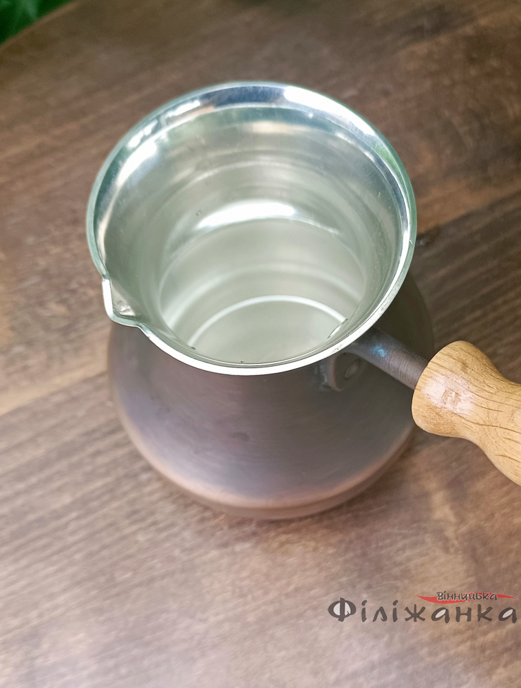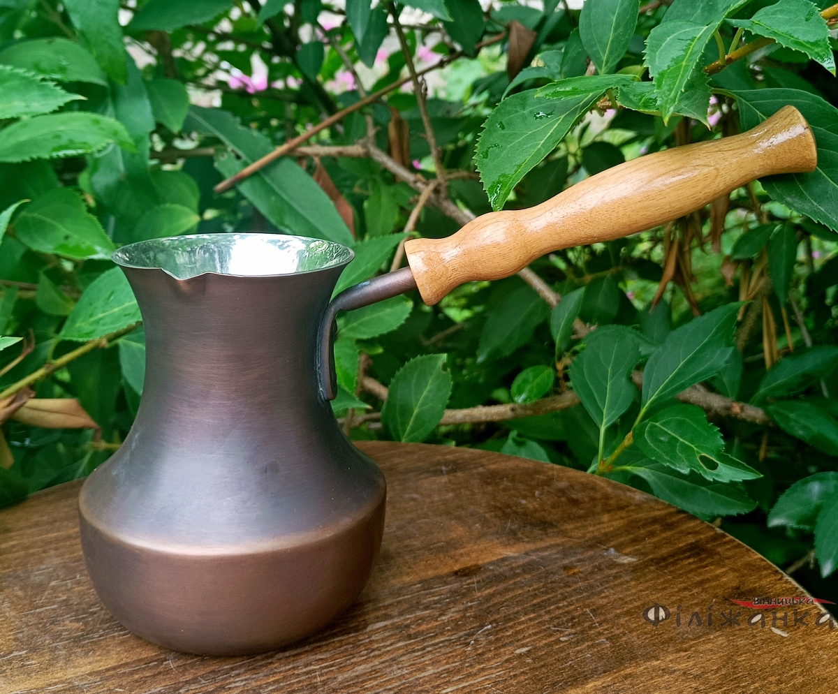 Особенностью этой турки является деревянная ручка, которая не нагревается во время приготовления кофе и обеспечивает удобный хват при использовании. Ручка также добавляет изысканности и оригинальности в дизайн изделия.