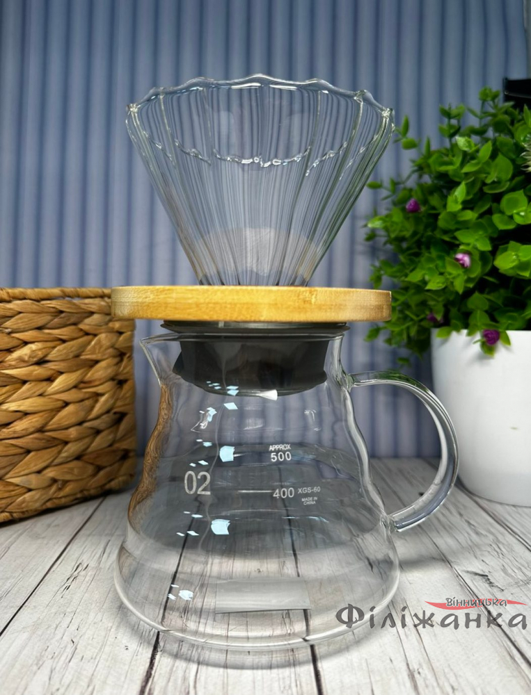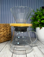 Пуровер Джимма виготовлений з високоякісного термостійкого скла, що не тільки надає йому сучасний та витончений зовнішній вигляд, але й забезпечує виняткову довговічність. Прозорі стінки дозволяють спостерігати за кожним етапом процесу заварювання – від початкового "цвітіння" до повільного стікання готової кави, перетворюючи звичайне приготування на медитативне видовище.