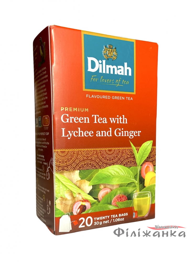 Чай Dilmah зелений зі смаком імбиру та Лічі 20 пакетиків (60520)