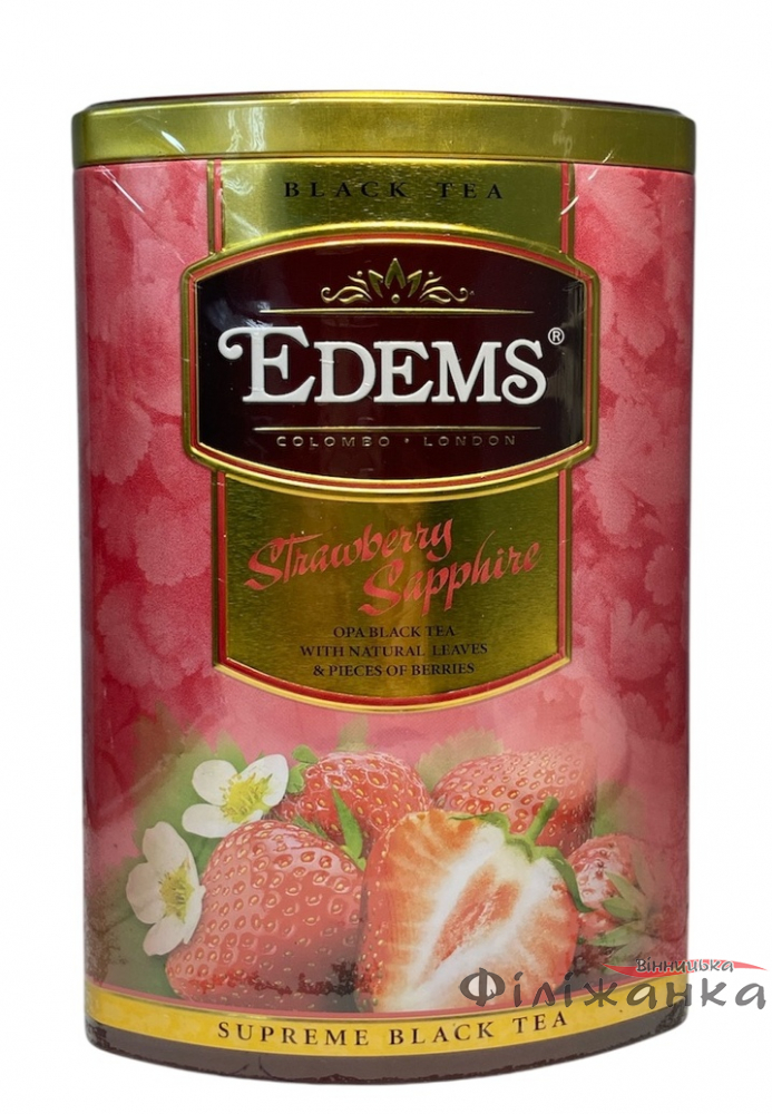 Чай Edems Strawberry Sapphire чорний Полуниця Сапфір зі шматочками ягід у металевій банці 200 г (60639)