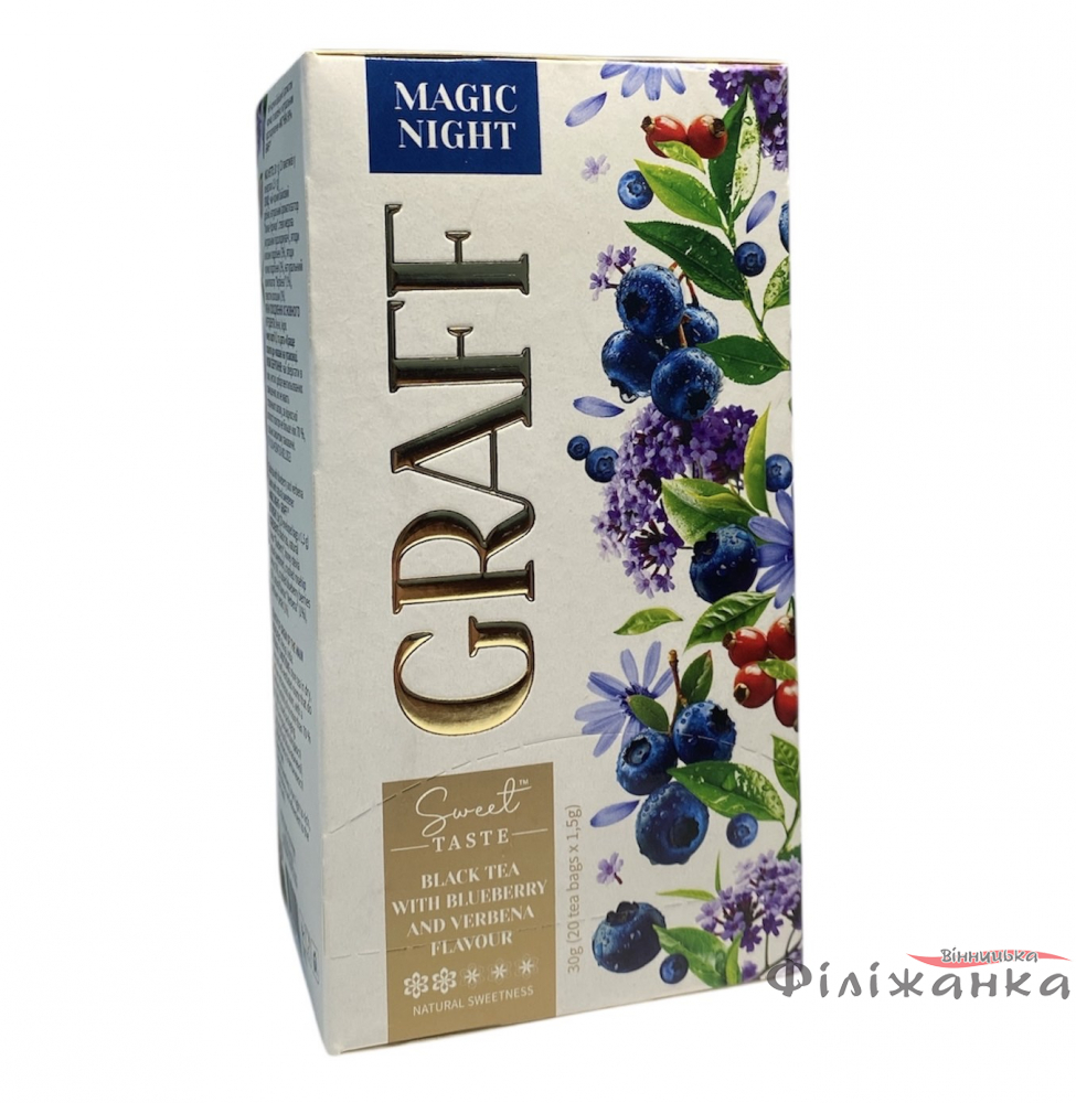 Чай Graff чорний Магічна Ніч з ароматом чорниці та вербени 20 пакетиків по 1,5 г (60727)