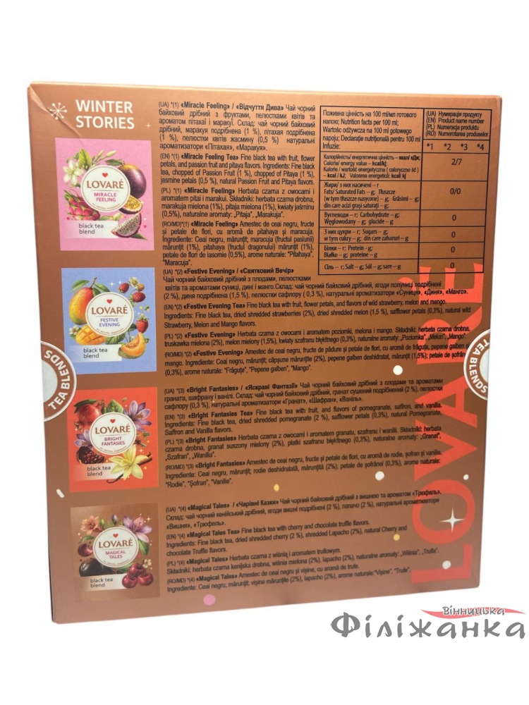 Характеристики Чай Lovare Winter Stories Новорічний набір чорного асорті 32 пакетика (60882)