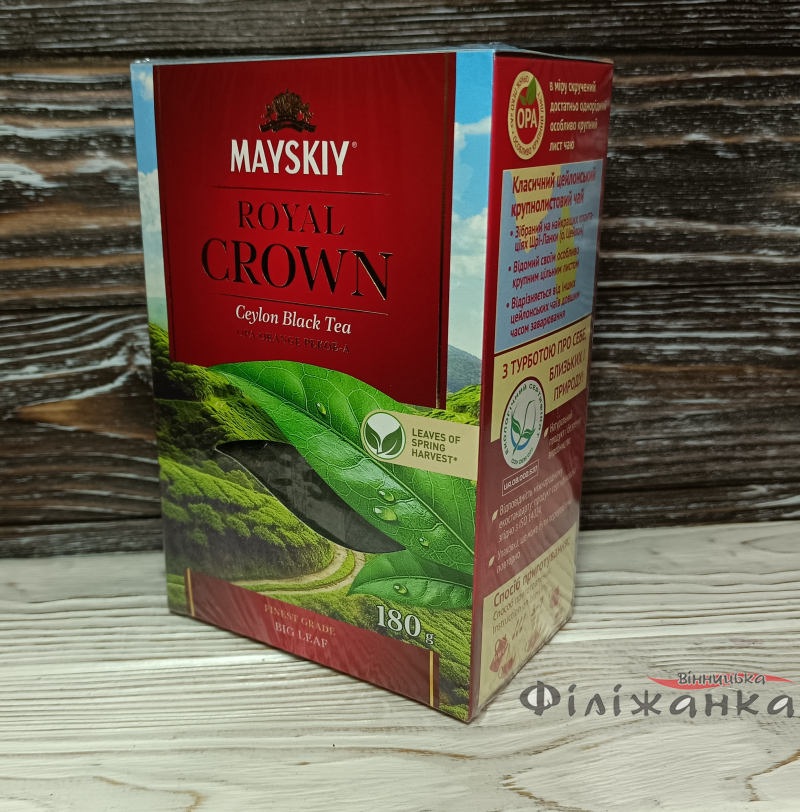"Майський Царська Корона" виготовляється з добірного листя чайних кущів, ретельно відібраних та оброблених із турботою про якість. Він має насичений і гармонійний смак з легкими фруктовими нотками і приємною гіркуватістю. Аромат чаю зачаровує своїми тонами та створює особливу атмосферу насолоди та умиротворення.