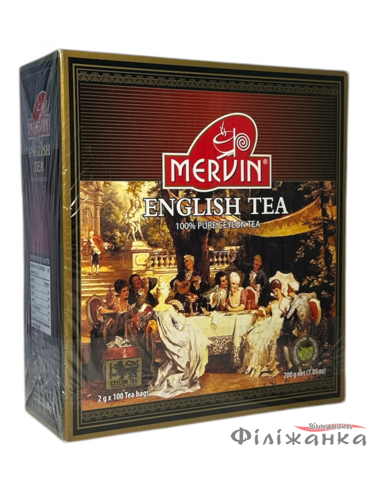 Упаковка включає 100 пакетиків, що робить чай Mervin English зручним та економічним вибором для насолоди смачним чаєм у будь-який час.