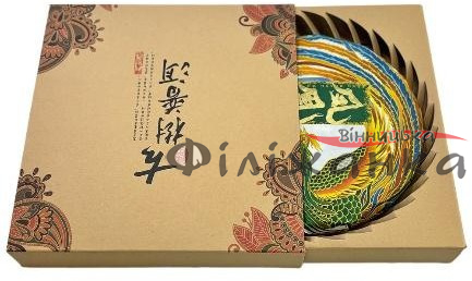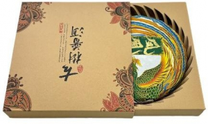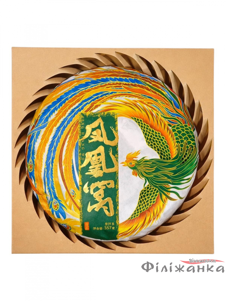 Подарункова упаковка додає особливої вишуканості цього продукту. Вага чаю становить 0,357 г, що є типовою кількістю для одного пресованого диска. Чай Пу-Ер Бінг ча преміум Шен зеленого кольору візуально і вражає своєю елегантністю та яскравістю.
