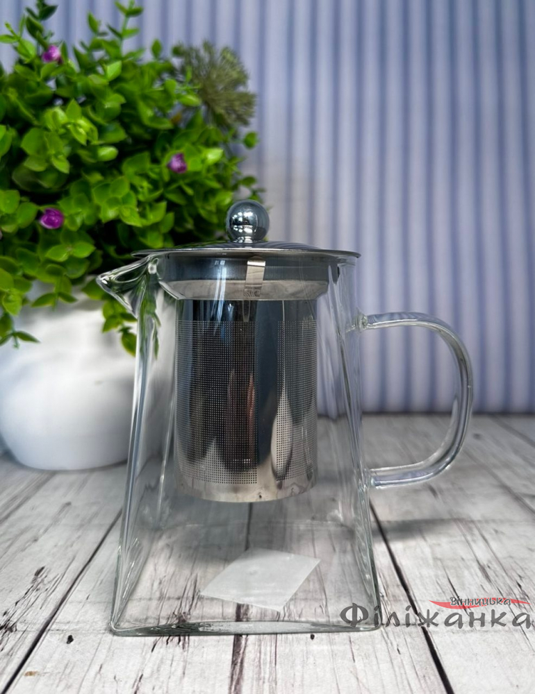 Об'ємом 550 мл, він ідеально підходить для затишних чаювань удвох або для особистої насолоди протягом дня. Високоякісне скло, з якого виготовлений чайник, дарує не тільки естетичну насолоду, а й гарантує, що смак вашого улюбленого чаю залишиться чистим і неспотвореним.
