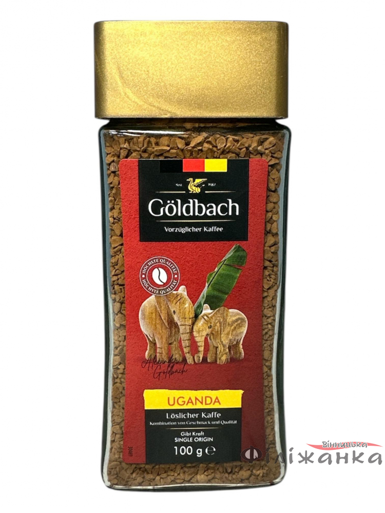Відкрийте для себе зручність та багатий смак з кавою Goldbach Uganda. Ця гранульована розчинна кава, представлена в стильній скляній банці вагою 100 грамів, створена для тих, хто цінує швидкість приготування без компромісів у якості. Кожна гранула зберігає в собі потенціал насиченого напою, готового подарувати бадьорість та задоволення в будь-який час.