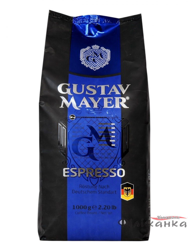 Для збереження бездоганної свіжості та аромату, кава Gustav Mayer Espresso упакована у спеціальний пакет із фольги вагою 1 кг. Упаковка виробляється безпосередньо в Німеччині, що є гарантією найвищого контролю якості та дотримання всіх стандартів, забезпечуючи термін зберігання до 24 місяців.