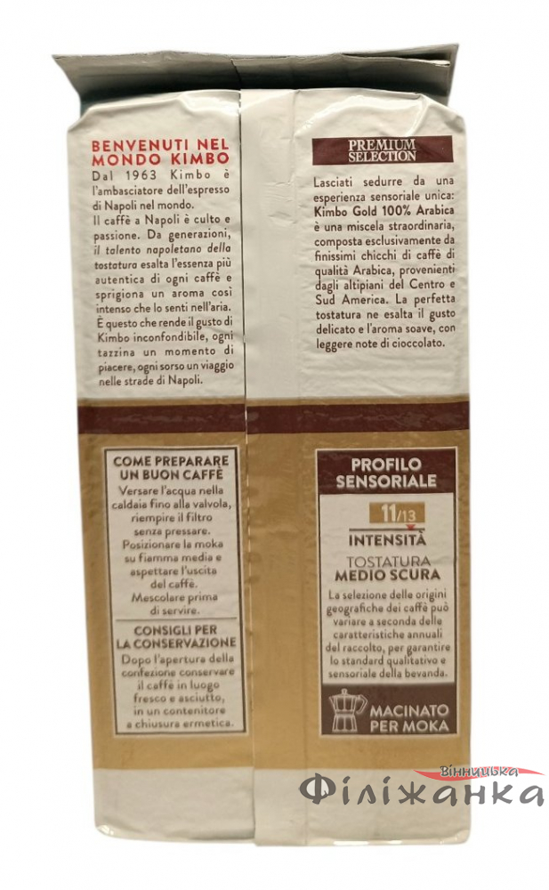 Характеристики Кава Kimbo Gold 100% Arabica мелена 250 г (60925)