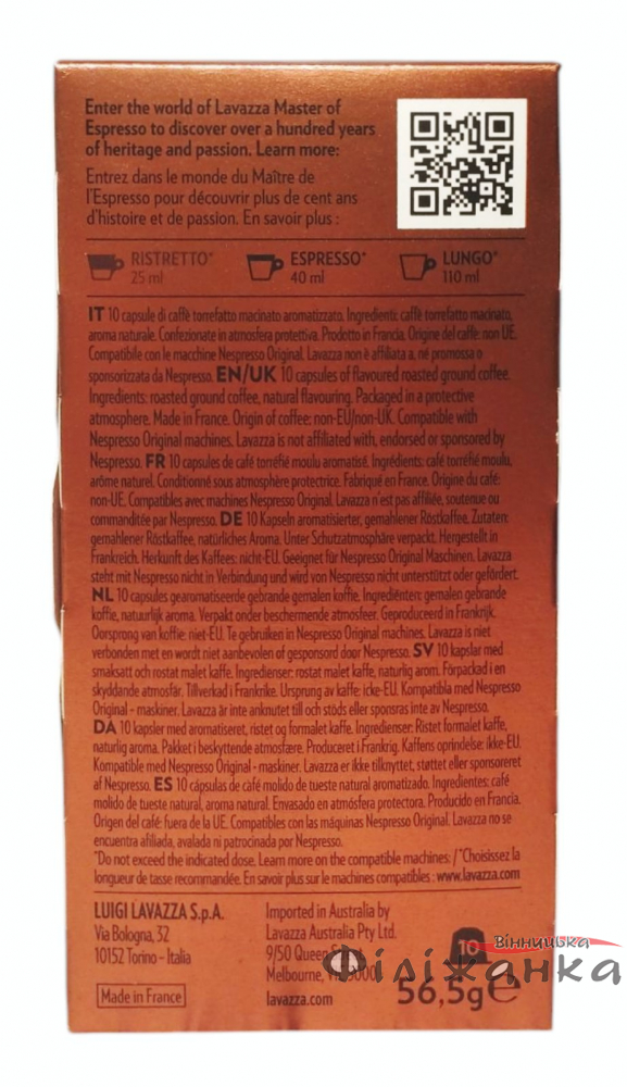 Характеристики Кава Lavazza aluminium Nespresso Caramel 10 капсул (60393)