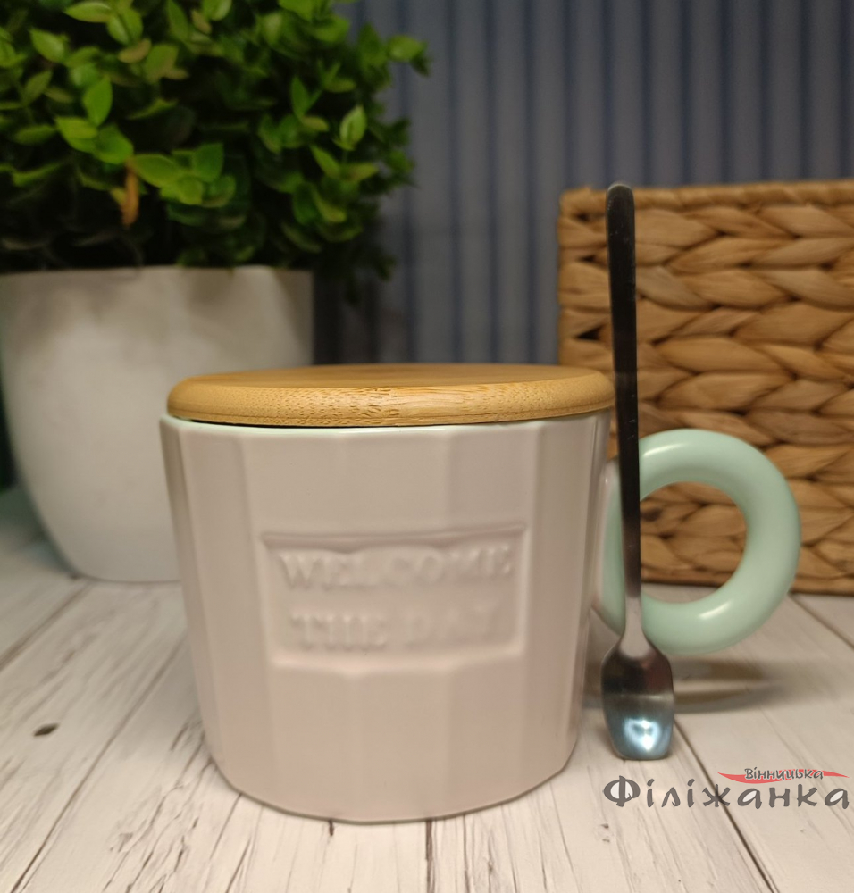 Чашка з кришкою і ложкою Welcom Рожева 320 мл (60021)