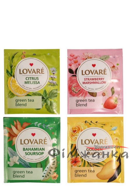 Відкрийте для себе колекцію освіжаючих смаків з чаєм Lovare Green Assorted. Це вишукане зелене асорті у зручних пакетиках створене для тих, хто цінує різноманітність та високу якість у кожній чашці.