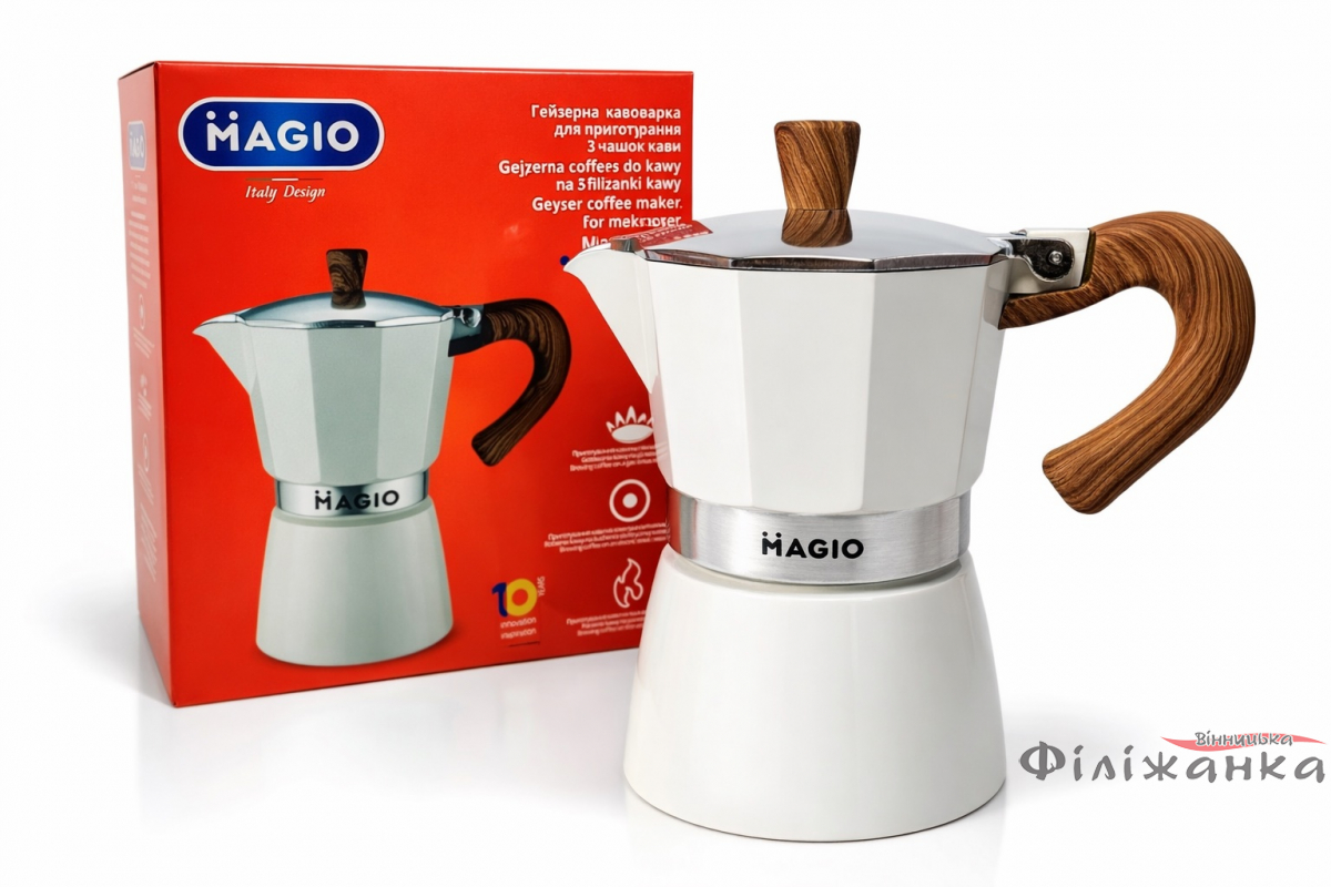 Гейзерна кавоварка Magio створена для тих, хто цінує якість та практичність. Серед основних переваг: