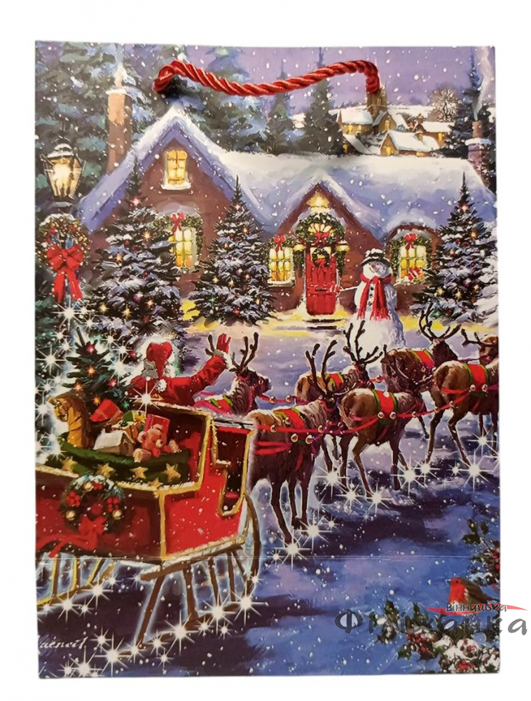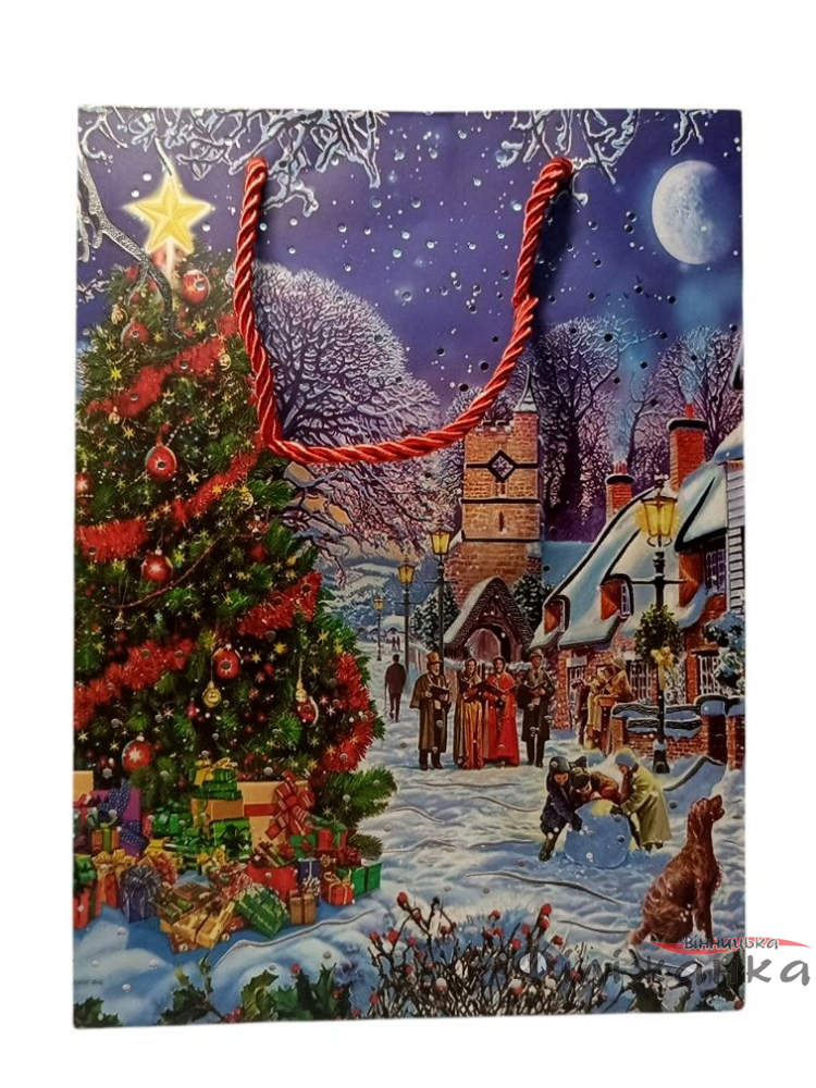 Пакет виготовлений із щільного та якісного картону, що витримує вагу подарунків і не деформується під час перенесення. Міцні ручки створюють додаткову зручність, а ламінована або матова поверхня (залежно від дизайну) захищає виріб від потертостей та надає йому презентабельний вигляд. Завдяки високій якості друку всі зображення виглядають яскраво, насичено та зберігають святкову естетику протягом усього сезону.