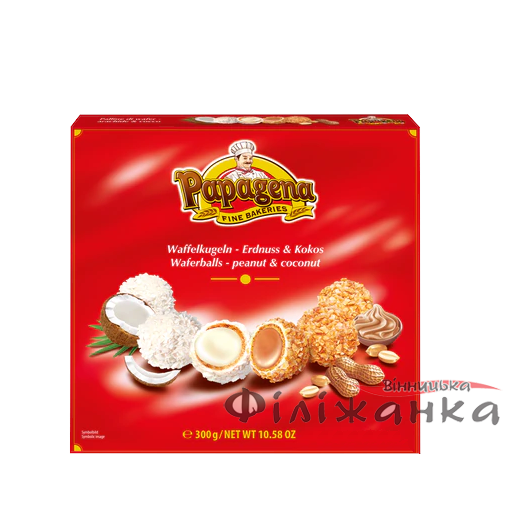Вафельні кульки Papagena Кокос та Арахіс – це ідеальне поєднання хрусткої вафлі, ніжного кокосового крему та ароматного арахісу. Цей продукт стане справжнім відкриттям для всіх любителів солодощів та ідеальним доповненням до вашого чаювання чи перекушування.