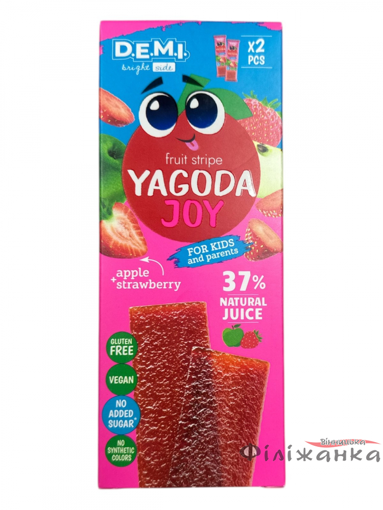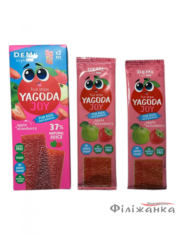 | Назва товару | Пастила фруктова DEMI Yagoda Joy з соком полуниці 2 шт*15 г |