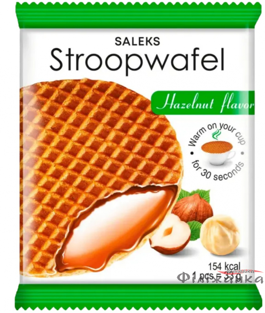 Характеристики Вафлі Saleks Stroopwafel з карамельною начинкою та тертим фундуком 33 г х 30 шт (60662)