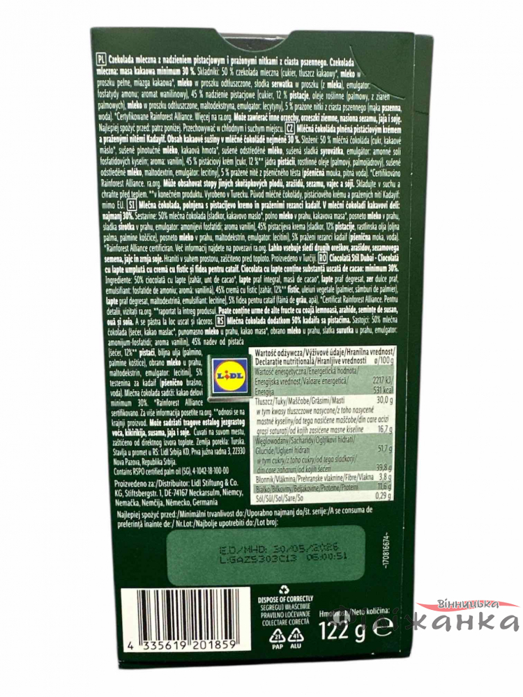 | Добавки | Фісташка, хрусткий Кадаїф |