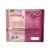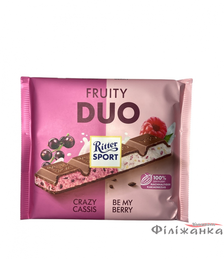 Завдяки барвистому дизайну і неповторному поєднанню смаків, Ritter Sport Fruity Duo стане чудовим вибором для подарунка або приємного частування у будь-який день. Якісні інгредієнти, фірмова рецептура та впізнаваний квадратний формат роблять цю плитку справжньою знахідкою для поціновувачів шоколадних новинок. Це солодощі, що піднімають настрій, додають енергії та дарують маленьку порцію задоволення з кожним шматочком.