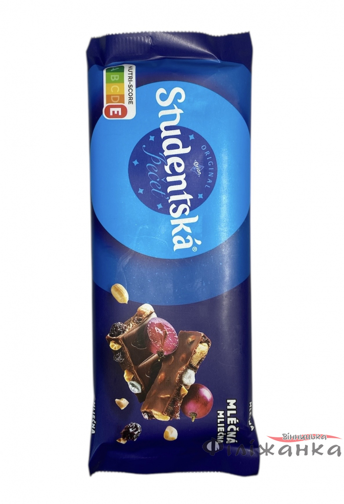 Характеристики Шоколад Studentska Mlecna Молочний з арахісом родзинками і желе 90 г (60810)