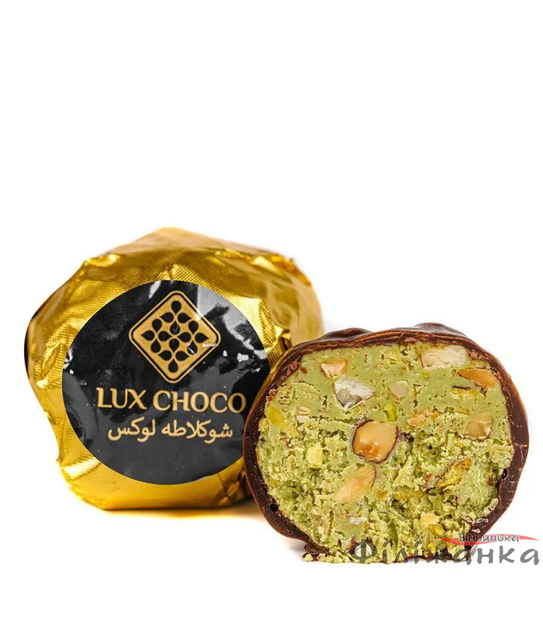 Дубайські цукерки Lux Choco № 4123 з мигдалем, фісташкою, тістом катаїфі та подрібненими лісовими горіхами в темному шоколаді ≈ 40 г (60796)