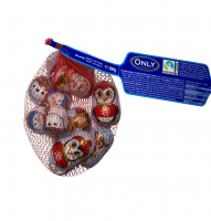 Цукерки в сітці виглядають дуже по-святковому: легка декоративна упаковка створює відчуття сюрпризу, а різнокольорові обгортки всередині підсилюють яскравість та позитивні емоції. Самі ж солодощі виготовлені з ніжного молочного шоколаду, який приємно тане в роті та має гармонійний, м’який смак, улюблений багатьма поколіннями.