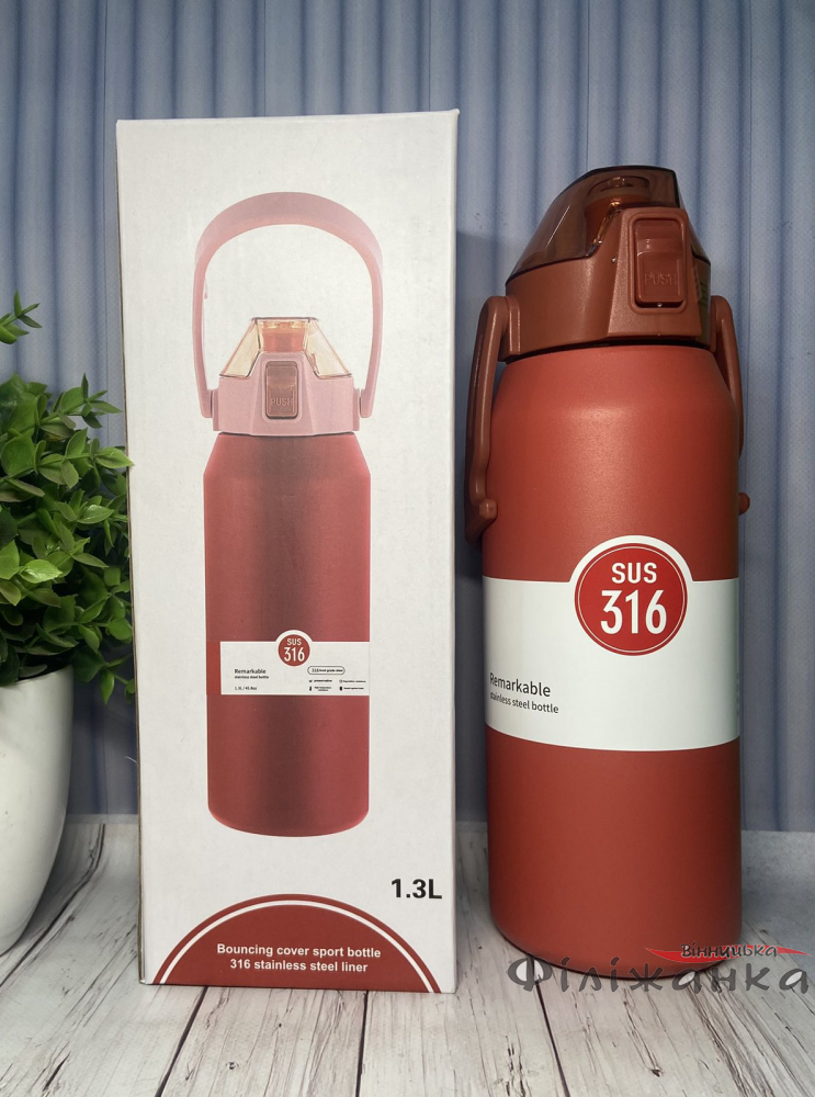 Характеристики Термос SUS 316 1300 мл червоний з поїлкою (58888)